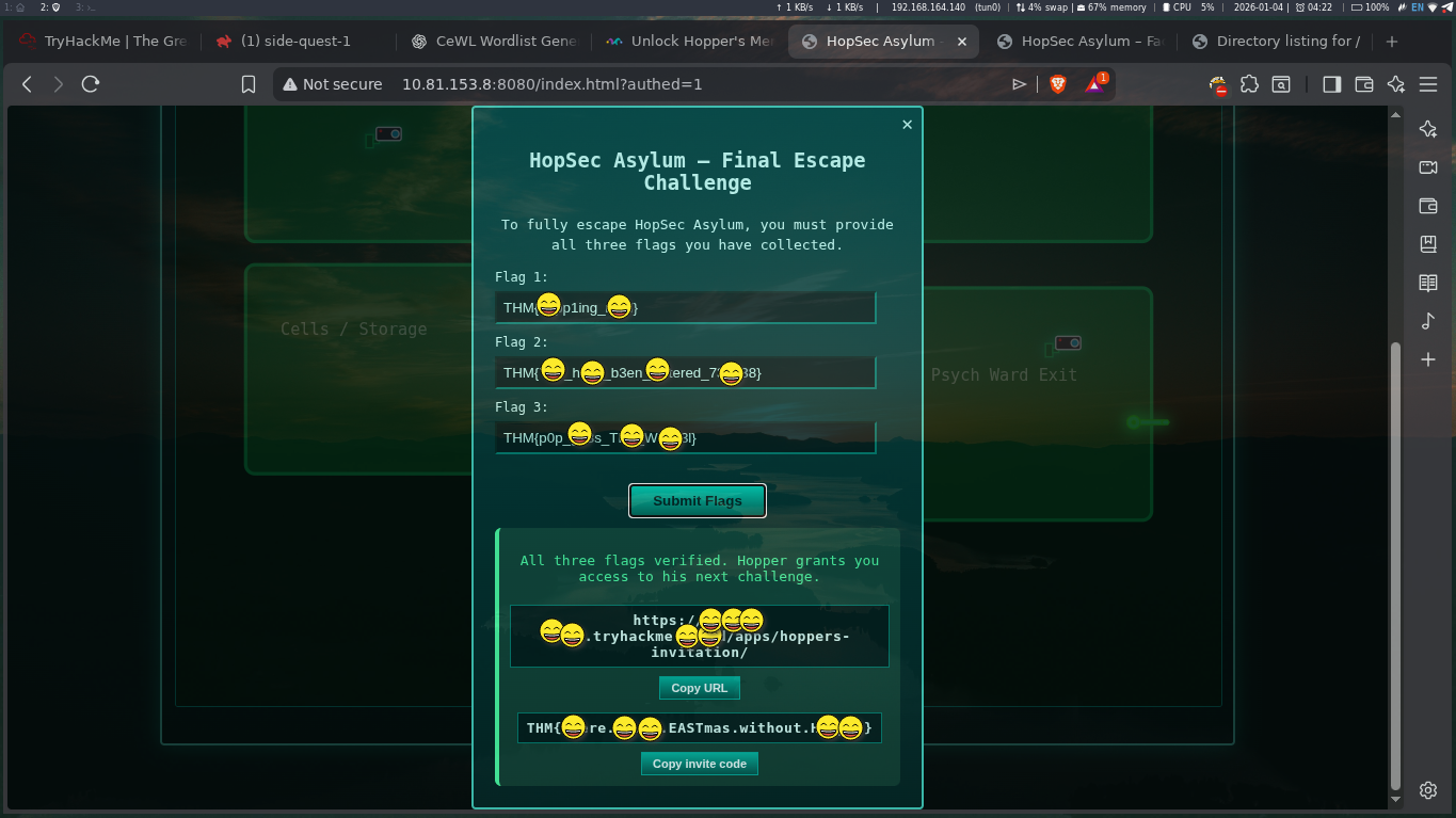 At this point, I had obtained all three flags and moved on to the final challenge.